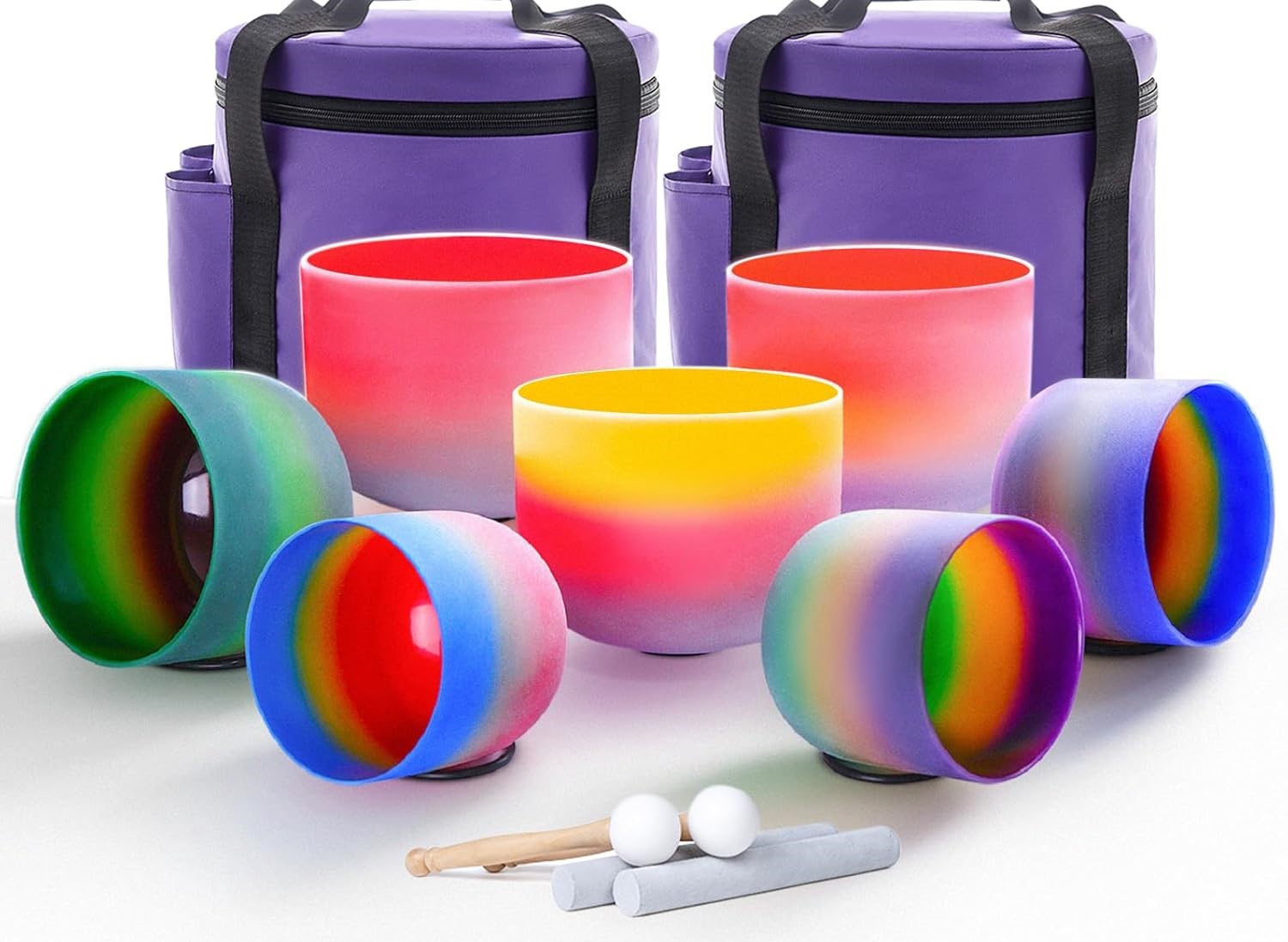 Zestaw kryształowych misek do grania zawiera – dwie torby i 7 pokrowców do przenoszenia, przechowywania i ochrony podczas transportu podróży !