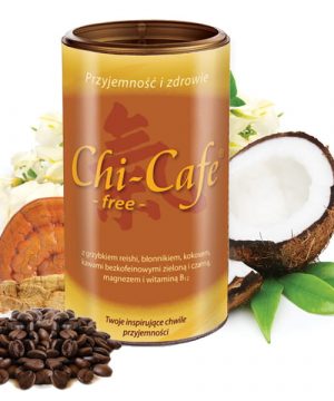 Chi-Cafe free 250g bezkofeinowa kawa czarna i zielona+Grzybek reishi+żeń-szeń+kokos+Magnez i witamina B12